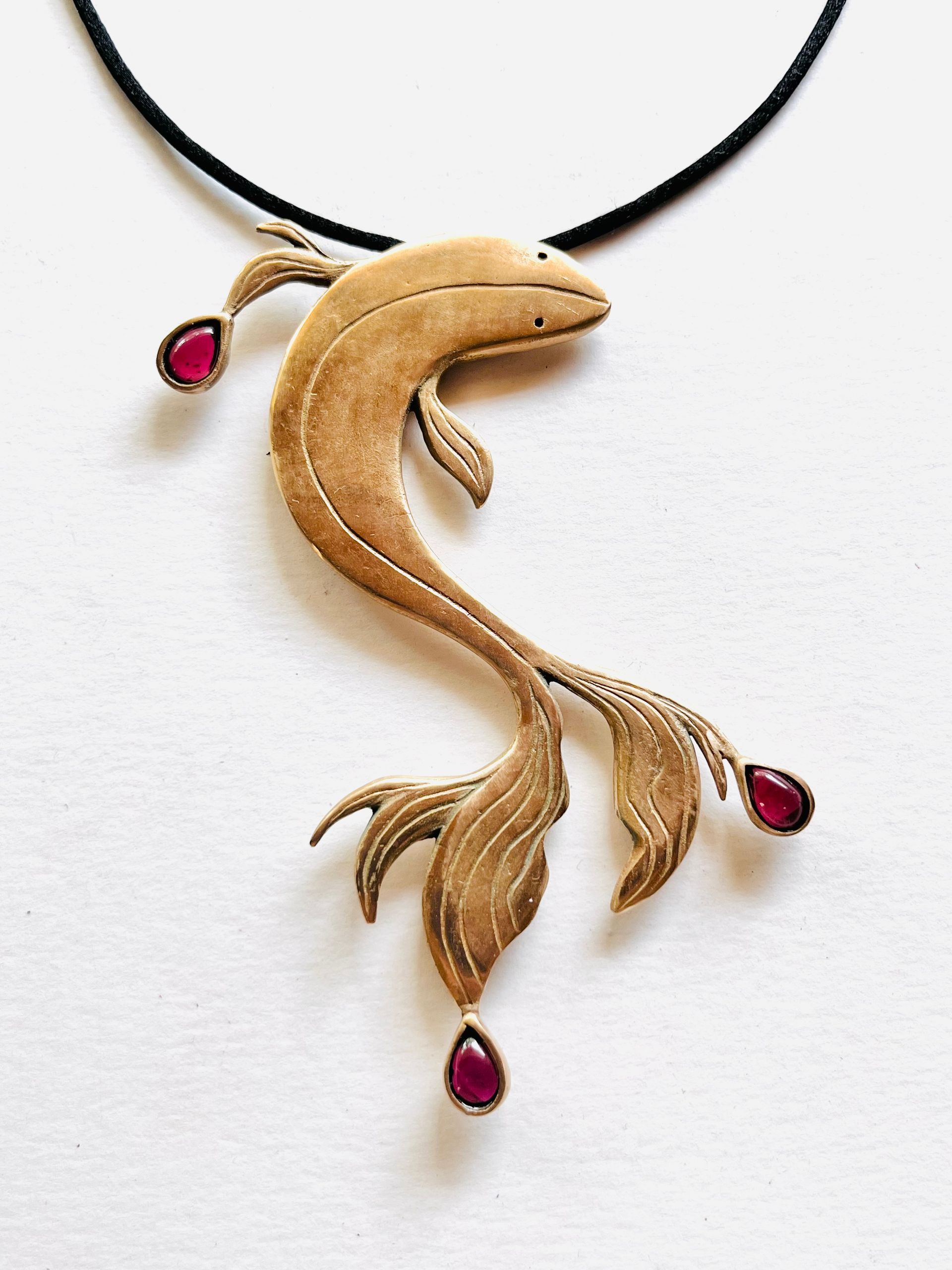Realizado en bronce con granates. Se puede utilizar también como broche.